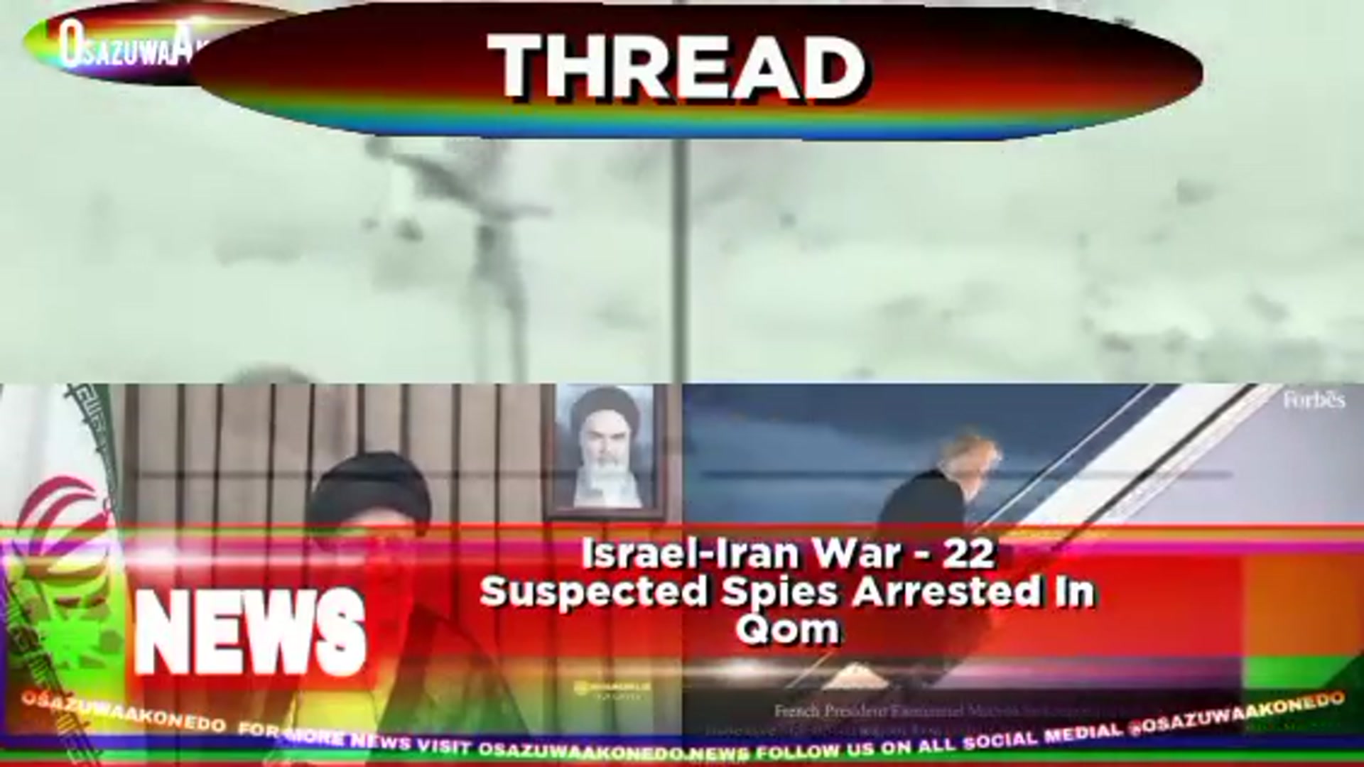 #World News #Iran #Israel #Putin #Trump ©June 21st, 2025 ®June 21, 2025 2:19 pm 22 persons suspected to be spies have been arrested in the Iranian province of Qom, with an apparent military insider media that operate with a verified X social media handle, Iran Armed Forces stating that the 22 Individuals were linked to Israeli Intelligent Services, and Police authority in Qom according to AFP confirmed the arrest of the 22 persons the police said are Israeli spies, this, Israel Defense Forces, IDF in a statement issued on Saturday morning said that Israeli troops in a precise attack killed the commander of the Palestine Corps of the Quds Force, Saeed Izadi in Qom. #OsazuwaAkonedo